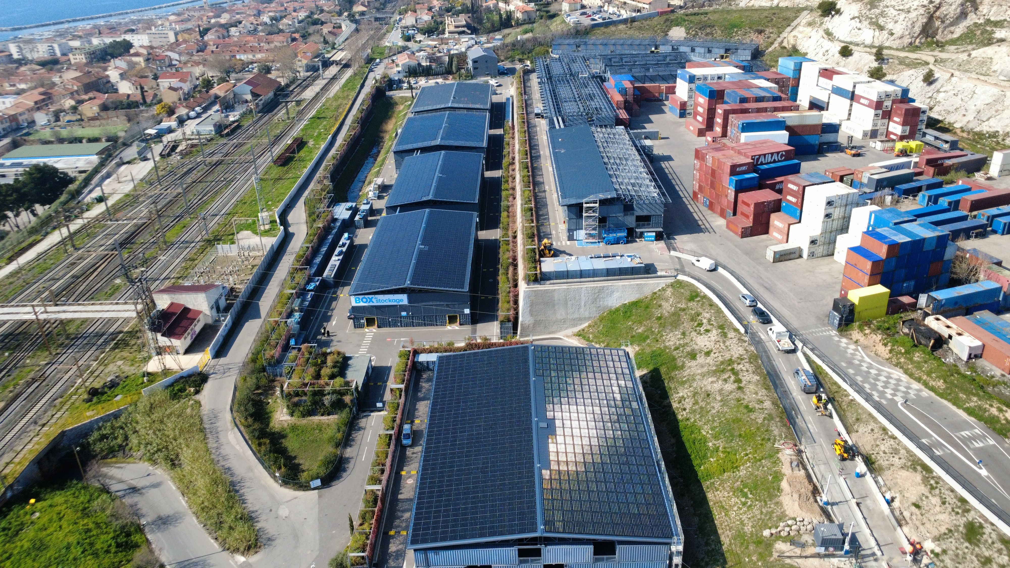 L’agence RESOTAINER Marseille Estaque se compose de 14 batiments de stockage qui représente plus de 1.5 ha de toitures. R-EV a pu donc mettre en place et exploiter plus de 3MWc de modules photovoltaïques en 2025. Les toitures permettent d'assurer une protection des boxs de stockage des clients et d'alimenter le site en électricité renouvelable pour les filliales du groupe : Resotainer (box), R-EV (bureaux), Arnal (activité de gestion réparation conteneurs).